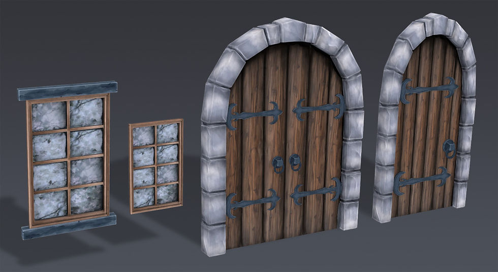 Low poly models, hand painted or high poly baked texture (the majority of assets use high resolution texture 2048x2048, Nrm, Occ and diffuse map), paintable ground material, automated foliage placement and custom collision. There is a total of 109 prop assets in this scene (some are just a variation of the same model).